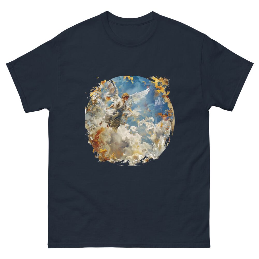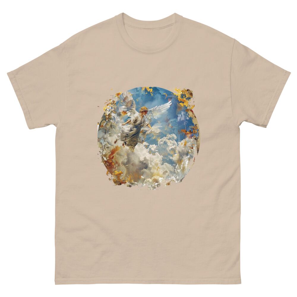 サルバドール・ダリの作品を身に着けよう。サルバドール・ダリ【天使の飛行】Tシャツは、彼の代表作「天使の飛行」をインスパイアしたデザインが特徴です。芸術の世界に触れるような気分を味わいたい方にお勧めの一枚です。